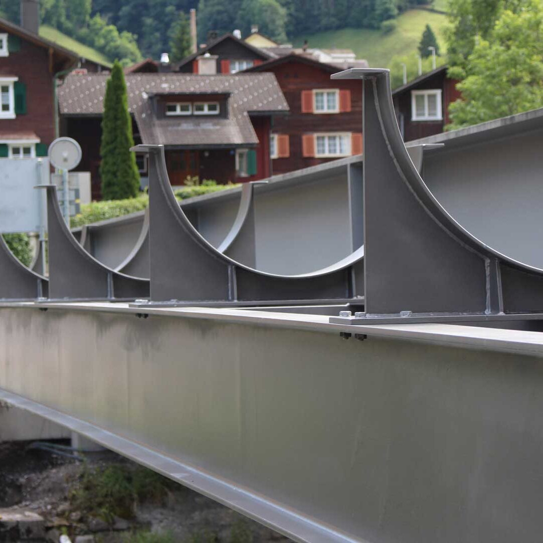 Der Stahlbrückenbau besticht nicht nur mit seinem unverkennbaren Stil, sondern weiss auch sonst zu überzeugen. Die massive Bauweise hilft auch nachhaltig, effizient und sicher zu bauen. So bieten unsere Stahlbrücken eine günstige und trotzdem ästhetische Alternative zu Bauten aus Beton, Holz oder Spezialmaterialien. Unsere jahrelange Erfahrung im Stahlbrückenbau, unser Team von Spezialisten als auch die grossen Montagehallen ermöglichen uns, Brückenbau für unterschiedliche Situationen anzubieten und mit einer individuellen Bauweise zu punkten.